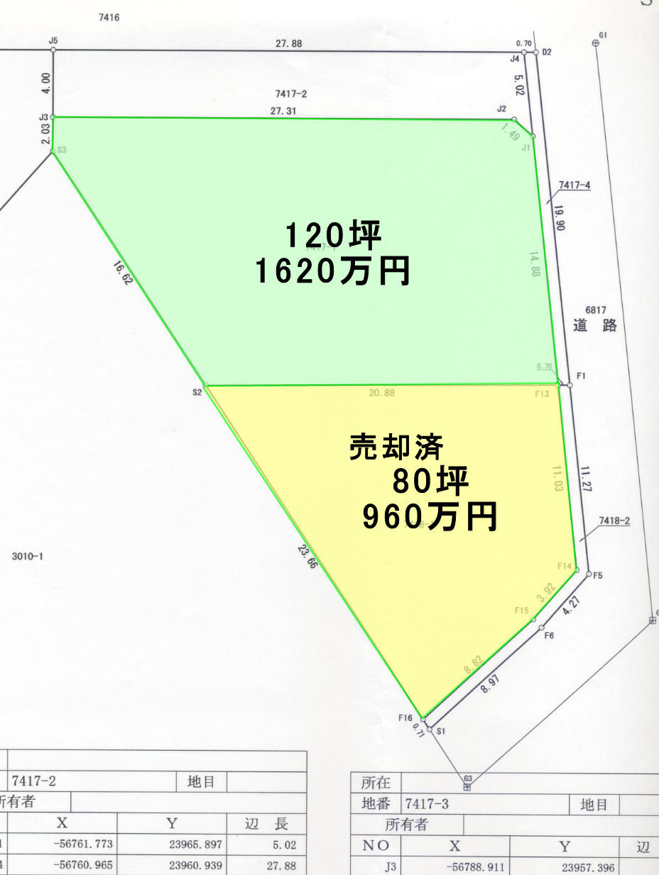 | 地籍 | 199.22㎡(60.26坪)~332.85㎡(100.68坪) | 地目 | 畑(農地転用後引渡し) |